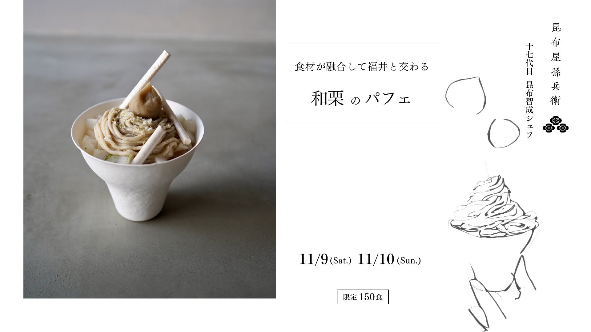 【イベント】ふくい南青山291|昆布屋孫兵衛 十七代目 昆布智成シェフによる「和栗のパフェ」11月9日(土)、10日(日)数量限定販売!