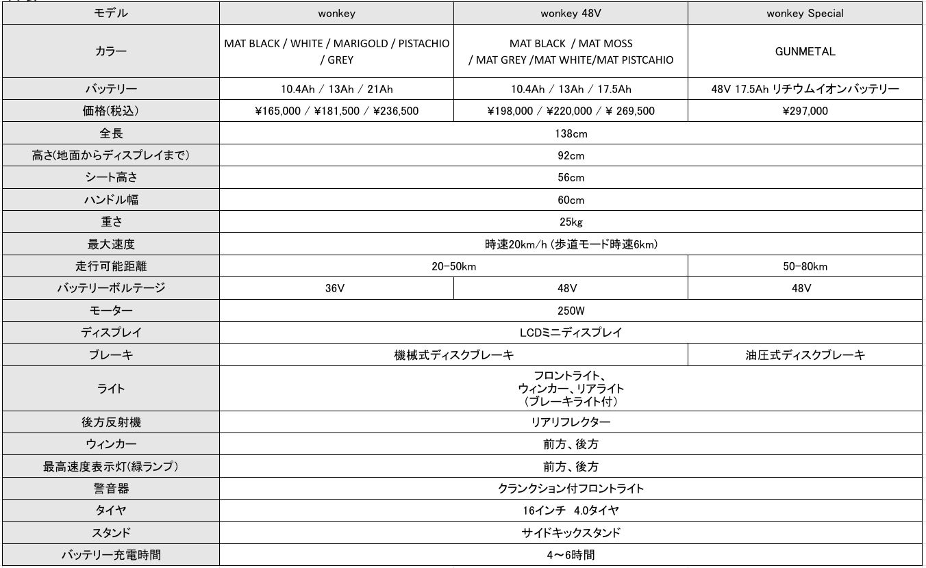 通常モデルの「wonkey」が36V 250Wに対し、「wonkey 48V」は 48V 250Wとなっております。