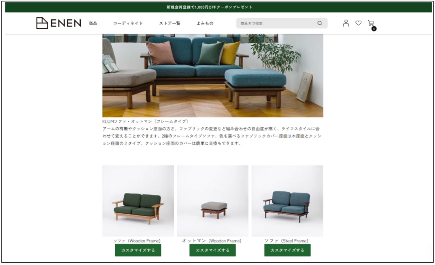 この度、ENENオンラインストアの商品ページでは、商品の選びやすさを重視し、このたび、「自分らしく自由にインテリアを楽しんでほしい」という想いから、自分の好みのカラーやサイズなど各パーツを選択し、オリジナルの家具を創造することができるモジュラー家具シミュレーターの提供を開始しました。