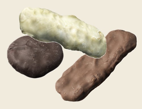 中に、甘いチョコレートでコーティングしたせんべいとあられ、塩気の効いたあられなど、6種類の味