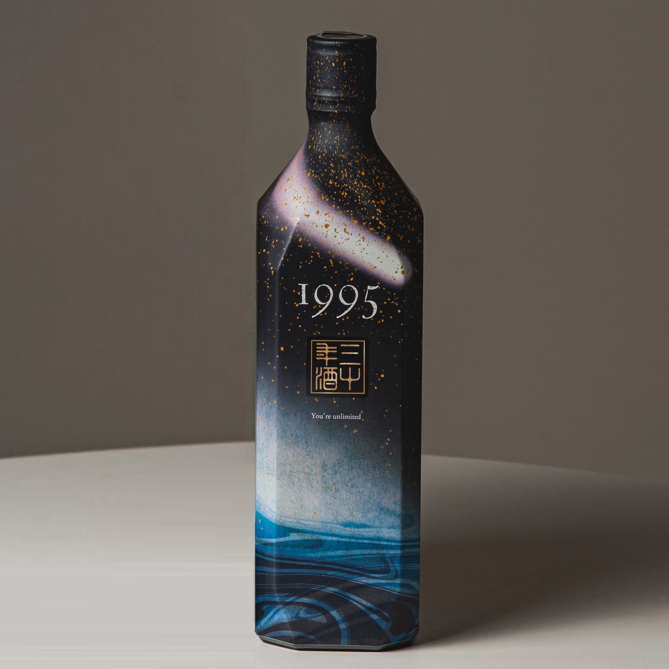完成 「1995」のパッケージは、奥田氏の提案で、高級感溢れる黒マットを基調とし、「三十年酒」という箔押しを採用。金属の箔ならではの光沢を演出しています。