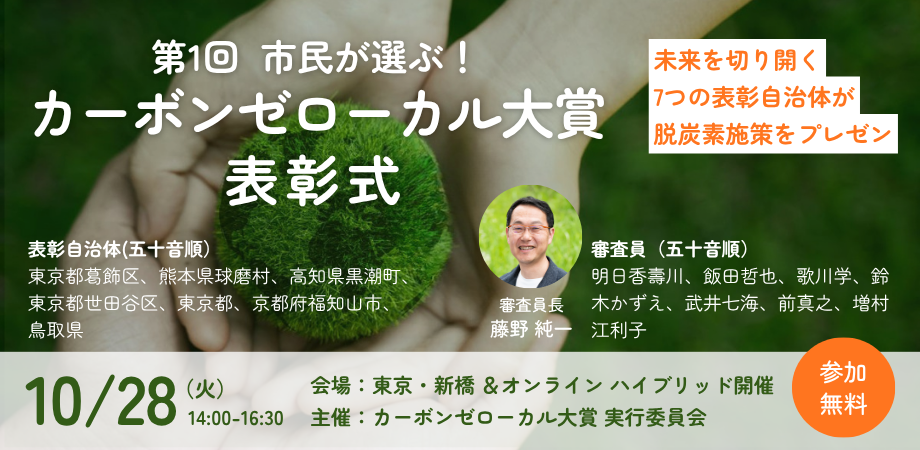 「市民が選ぶ!カーボンゼローカル大賞」立ち上げ 初の受賞先決定地域の脱炭素・快適な暮らしを実現する先進自治体を表彰