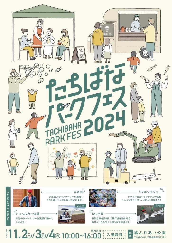 11/2(土)~11/4(月)に、橘ふれあい公園で体験型の公園イベントを開催します!