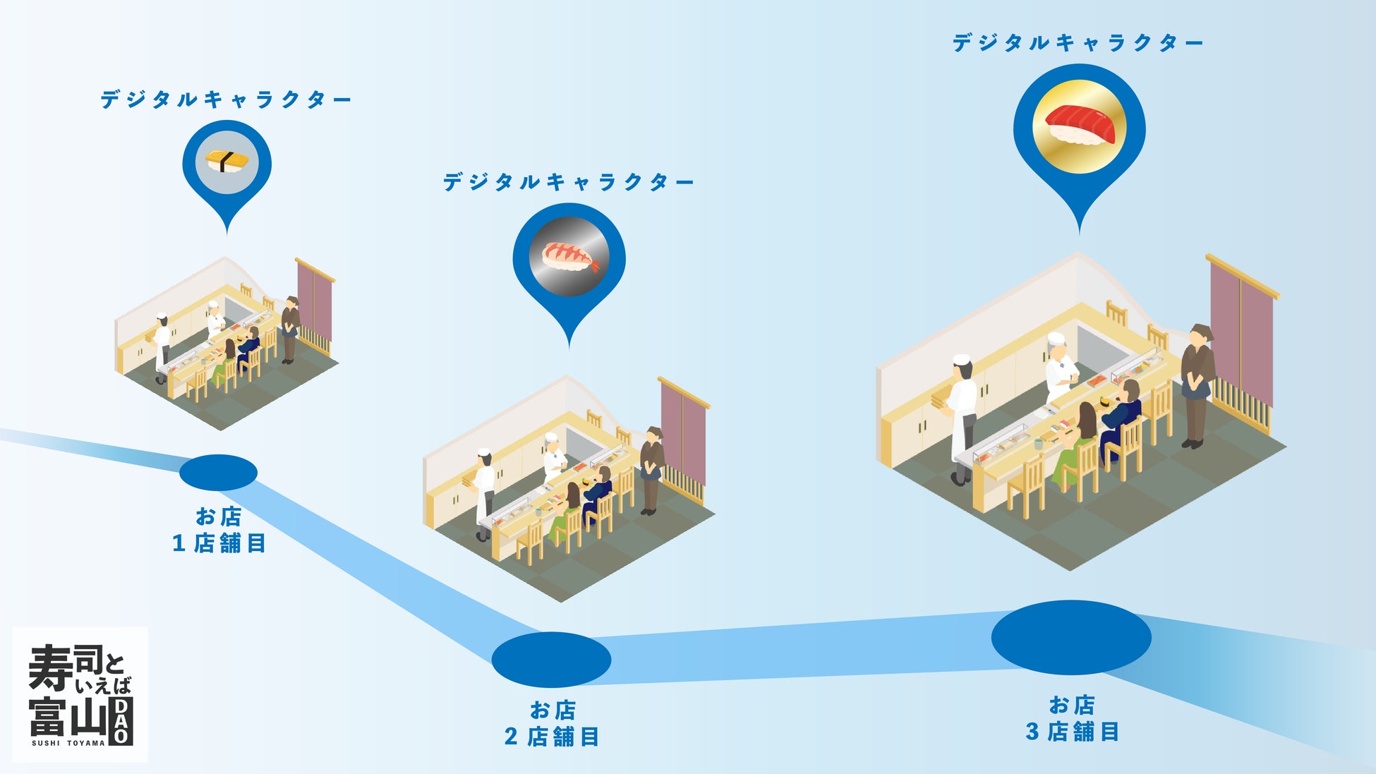 各店舗でのデジタルキャラクターの取得方法や抽選への参加方法に関する詳細は、寿司といえば富山DAO公式Noteにてご確認お願いします。