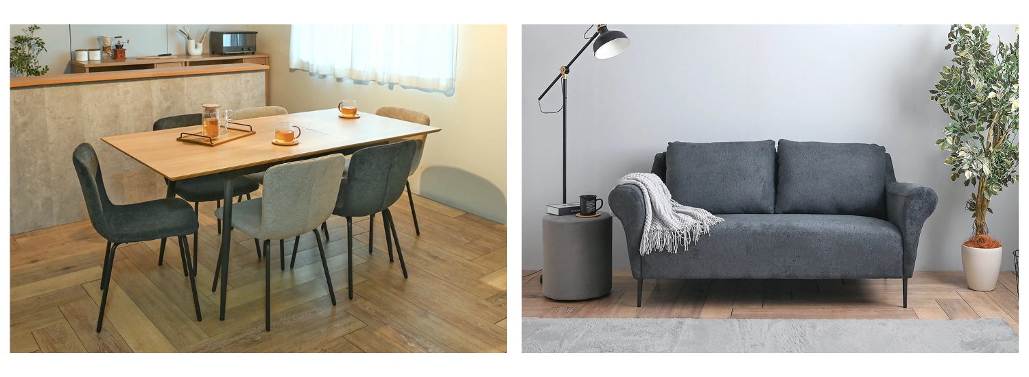 グレージュとダークグレーの2色展開により、様々なインテリアスタイルに合わせやすい
