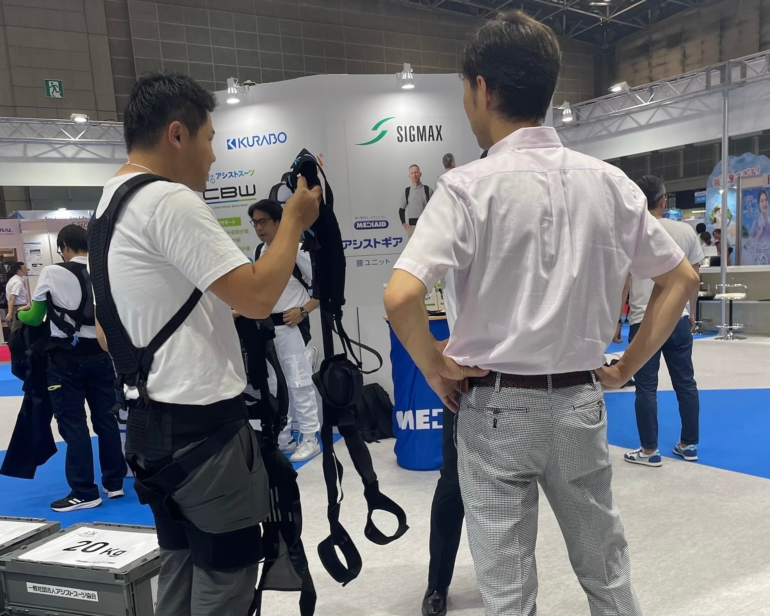 弊協会は、本展示会の目玉企画であるイベントスペース「リアル体感フィールド」へ、各加盟社のアシストスーツを展示。複数製品を試着・比較することが可能です。
