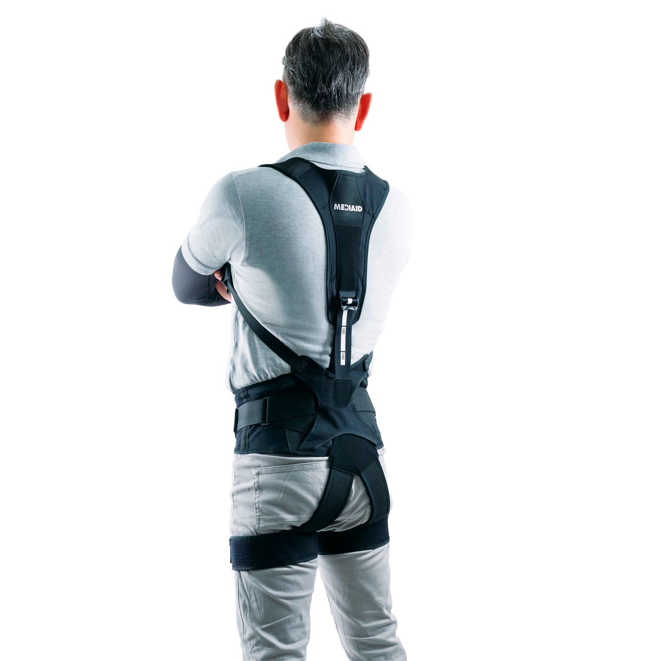 オランダ製アシストスーツのレイボはエネルギー回生システムを利用して前屈姿勢での肩や腰にかかる負担を軽減。パッドには独自開発した素材“EXGEL”を搭載し装着感向上。