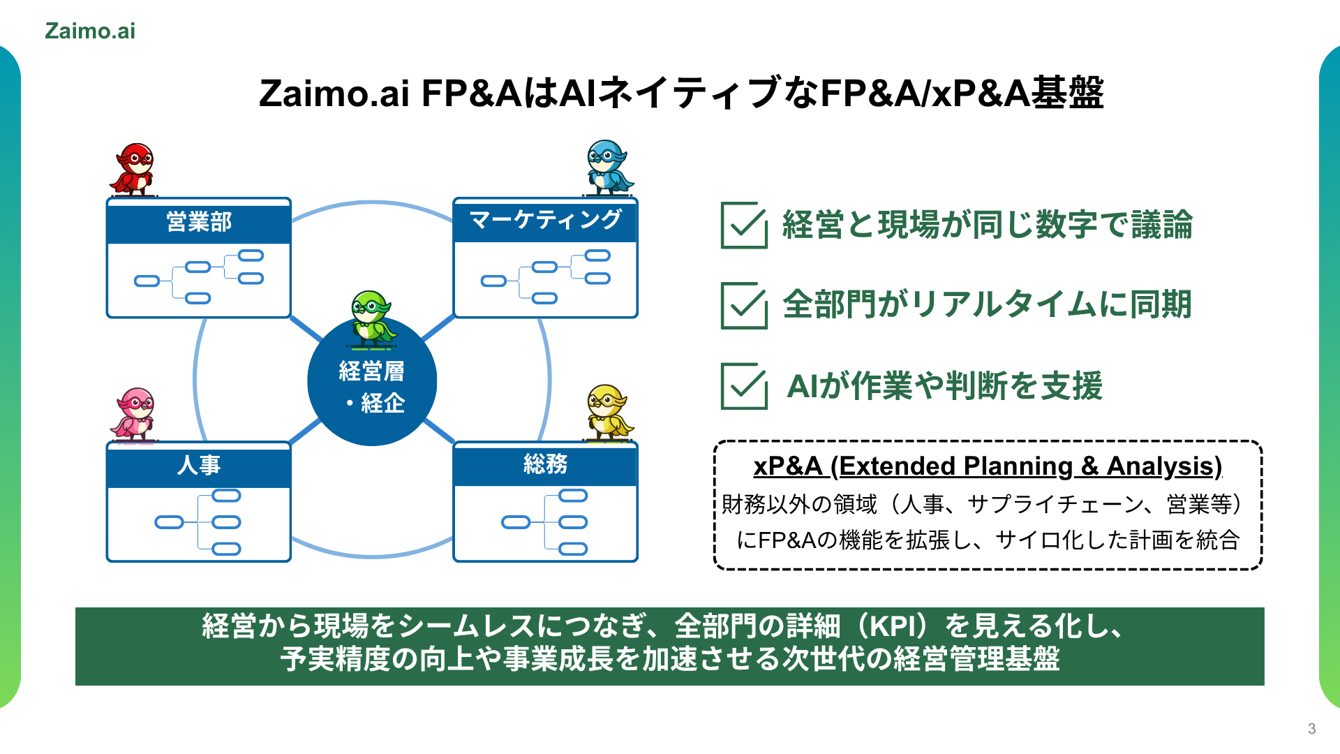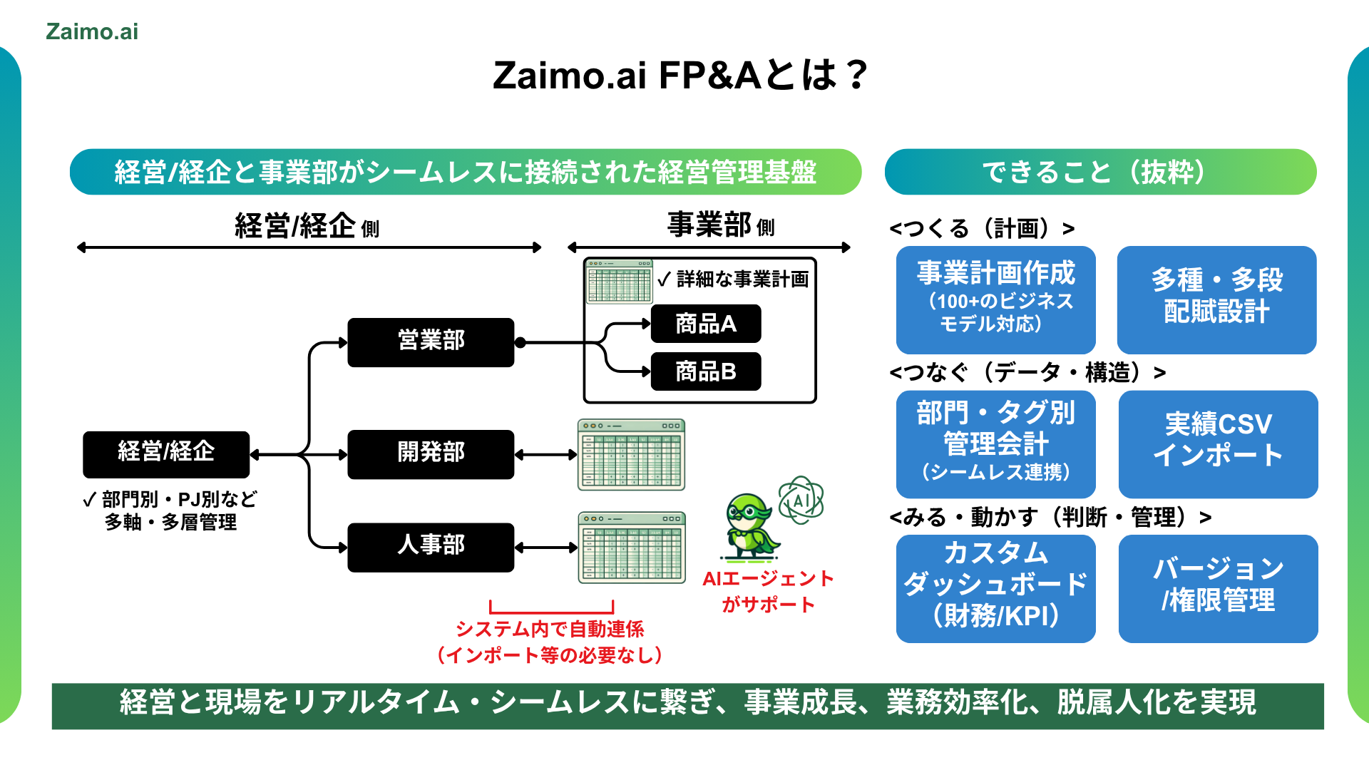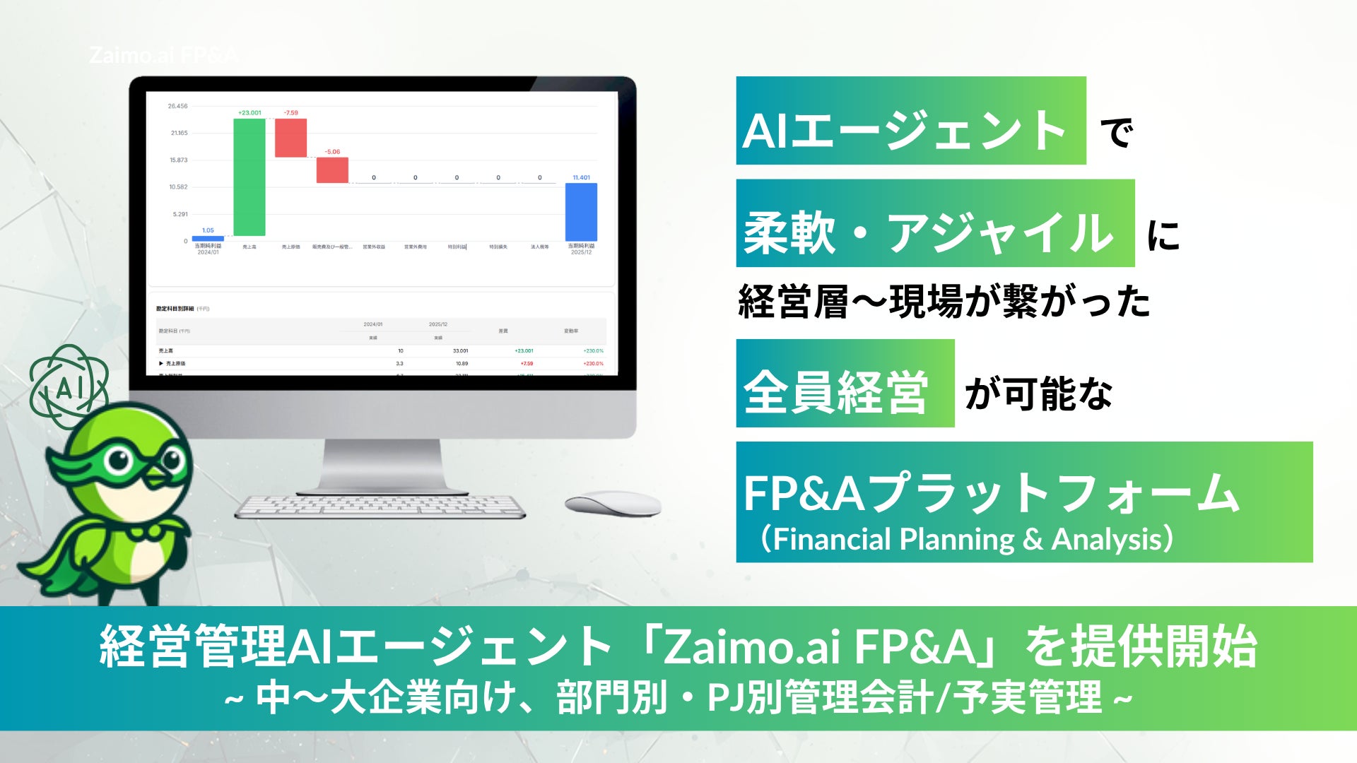 AIネイティブな予実管理・経営管理プラットフォーム「Zaimo.ai FP&A」を提供開始 — 部門別・PJ別など多軸での予実管理に対応