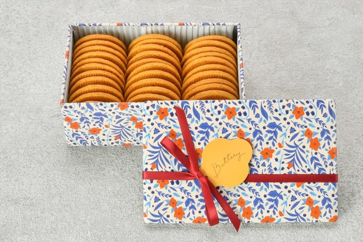 このたび10月2日(水)から、北海道バターを使用した、メープルシロップが香るかぼちゃの『Butteryクッキー(ハロウィン)』が、Buttery店頭とオンラインショップに新登場いたします。くるみとアーモンドをたっぷり入れた、香ばしくサクサクとした食感が魅力。密閉性の高いスチームラックオーブンで焼き上げた、焼きむらのない美しいクッキーを、赤い花柄が可愛いオリジナルクッキー缶に詰めました。旬のかぼちゃが主役となった期間限定商品を、ぜひこの機会に味わってみませんか。