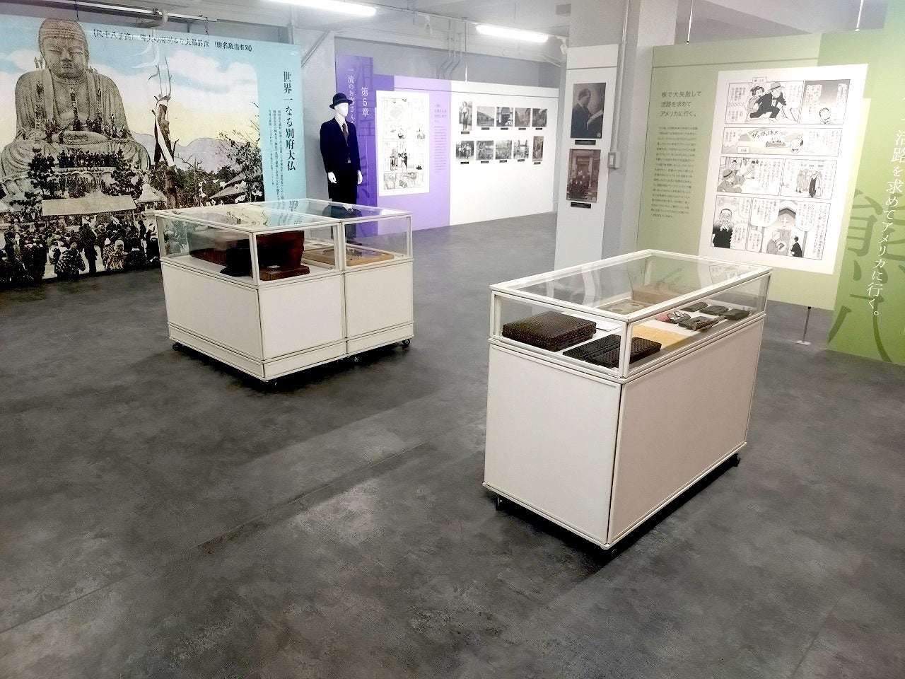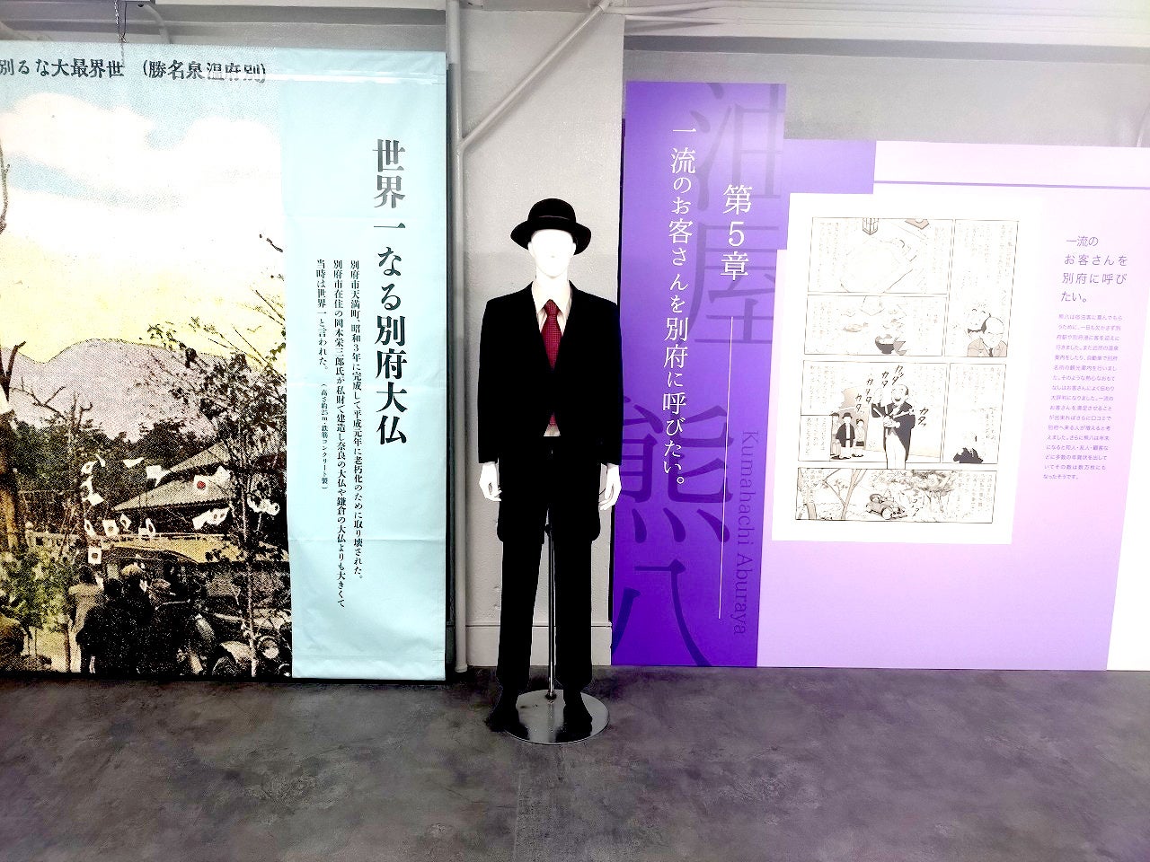 ミュージアム内では、油屋熊八氏に関する貴重な写真や書籍、洋服、そろばんなど、約150点が展示してあります。その中でも注目すべきは、彼が創業し「別府観光の礎」になった亀の井自動車(現・亀の井バス)の歴代バスガイドの制服です。平和マネキンは、この制服の展示に使用されるマネキンをはじめ、昭和初期の別府観光を象徴する衣装のマネキンや、展示物をより際立たせるためのショーケースも納入しました。