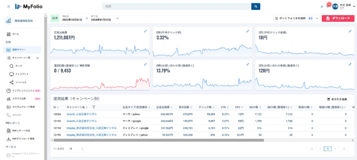 教育・情報をメインとした総合出版と事業を展開している旺文社が、同社のビジネスプラットフォーム「旺文社まなびID」の会員増にむけたデジタルマーケティング強化の礎として、リードプラスの支援の下、広告運用ダッシュボード「MyFolio」とGA4ベースの「サイトアクセス解析ダッシュボード」を活用し、データドリブンでのWeb広告やデジマ施策を行い、効果的な会員増施策を行いました。