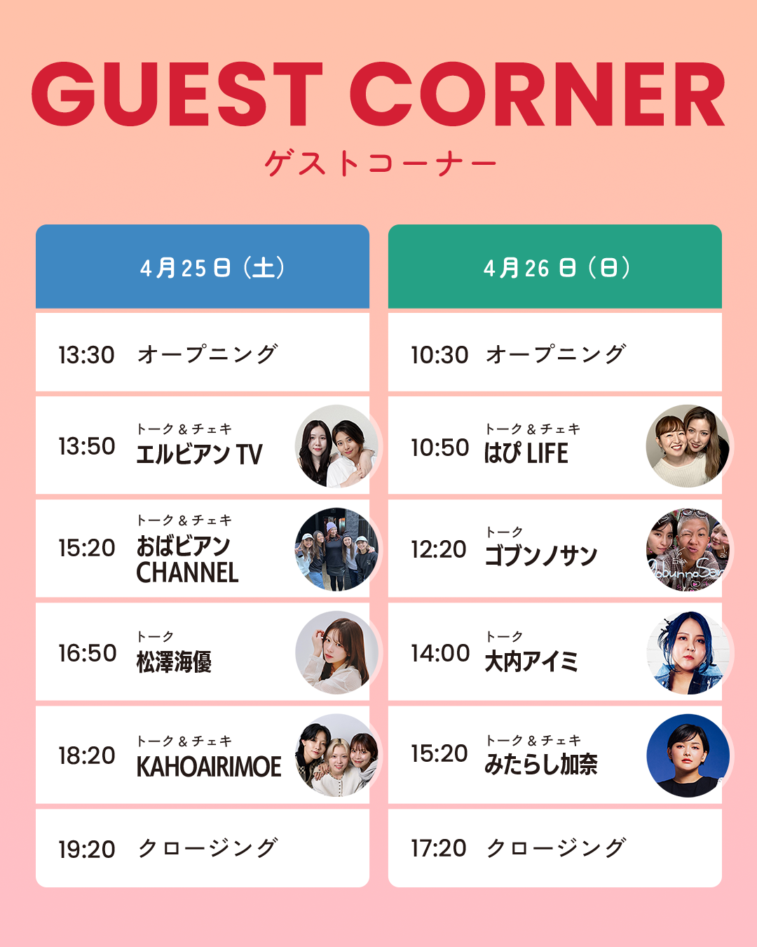 日程:2026年4月25日(土) 13:30-19:30/2026年4月26日(日) 10:30-17:30