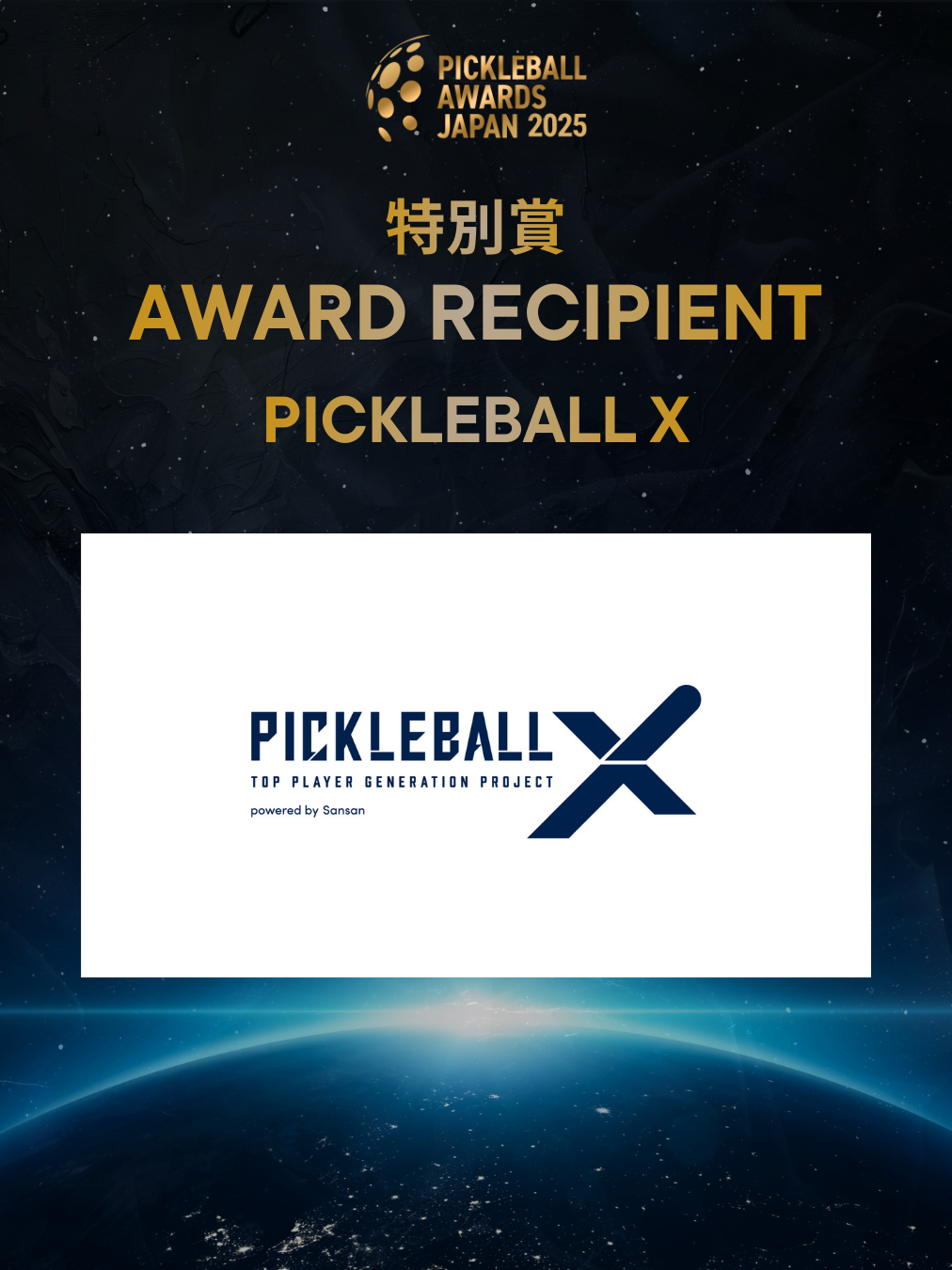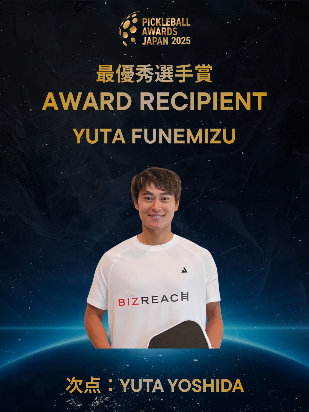 特別賞は、ピックルボール業界の普及および競技レベルの底上げにおいて、目覚ましい貢献を果たした方々を称え、特別に表彰するものです。