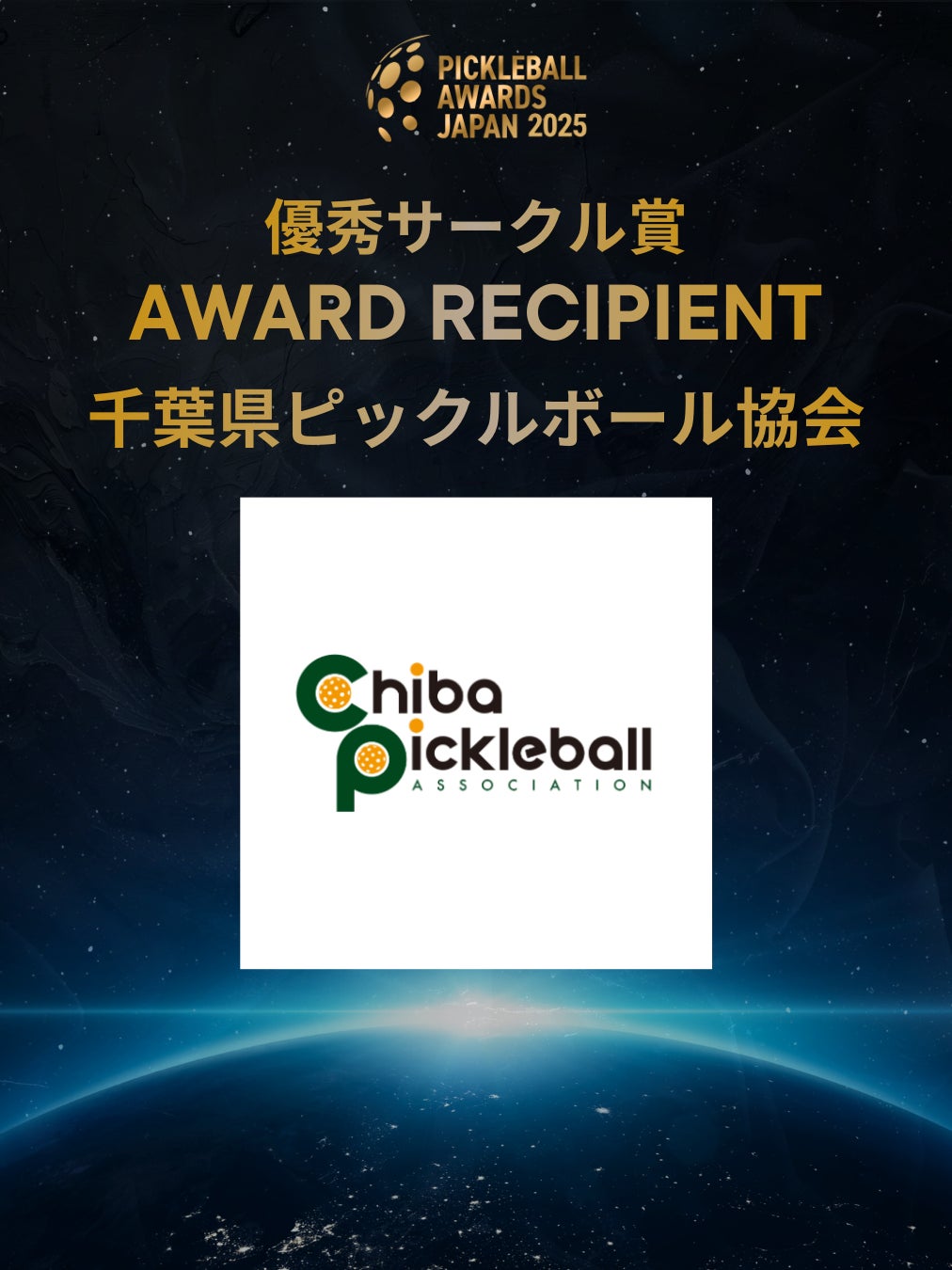 日本ピックルボール協会は、競技力の向上はもちろんのこと、健全な普及、指導体制の整備、地域コミュニティとの連携など、持続可能な競技環境づくりを目指しております。受賞された皆さまのみならず、ピックルボールを愛する人々の活動が、今後さらに多くの人々をピックルボールへと導き、日本における普及の発展が加速していくことを期待しております。