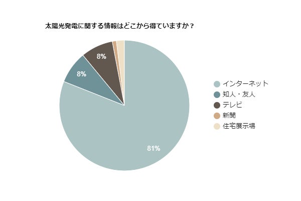 太陽光発電に関する情報をどのように得ているかを調査したところ、81%が「インターネット」を利用していると回答しました。過半数が「インターネット」から情報収集していることが分かります。