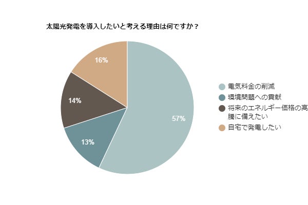 太陽光発電を導入したいと考える理由として、「電気料金の削減」が57%と最も多い回答となりました。