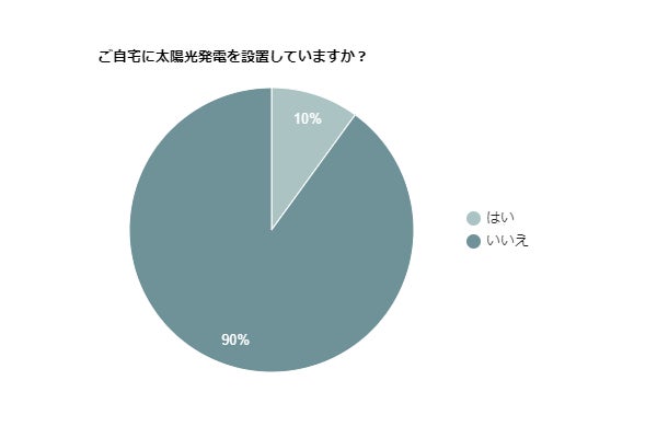 自宅に太陽光発電を設置している方は全体の10%と、少数にとどまりました。設置にかかる初期費用や維持費の負担が、この結果に影響していると考えられます。