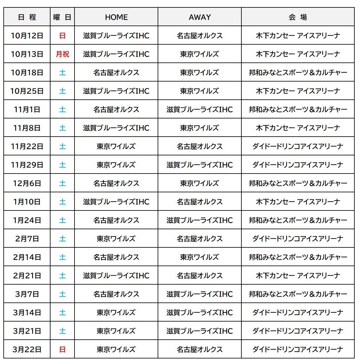 ・開幕戦:2025年10月12日(日) 滋賀ブルーライズIHC(HOME) vs 名古屋オルクス(AWAY)