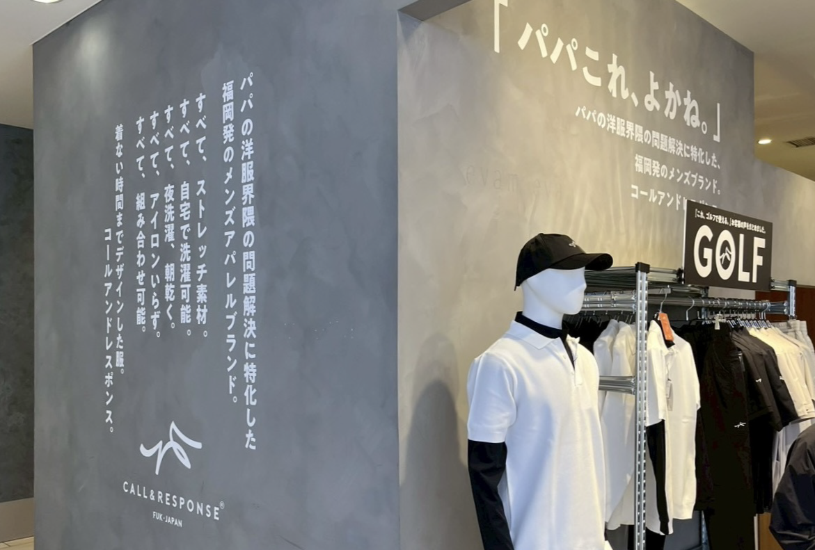 CALL&RESPONSE株式会社(本社:福岡市博多区、代表取締役:長江正勝)が運営する、「パパこれ、よかね。」をキャッチコピーに掲げる、洋服界隈の課題解決に特化した福岡発のメンズブランド「CALL&RESPONSE(コールアンドレスポンス)」は、4月10日、兵庫県神戸市のミント神戸5階に「CALL&RESPONSE ミント神戸店」をオープンしました。