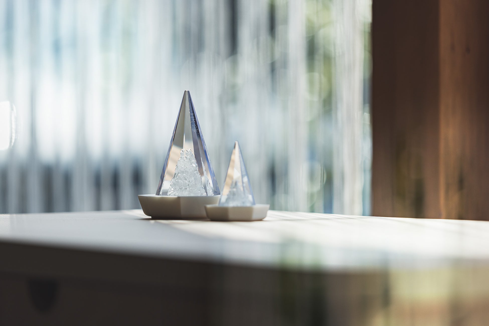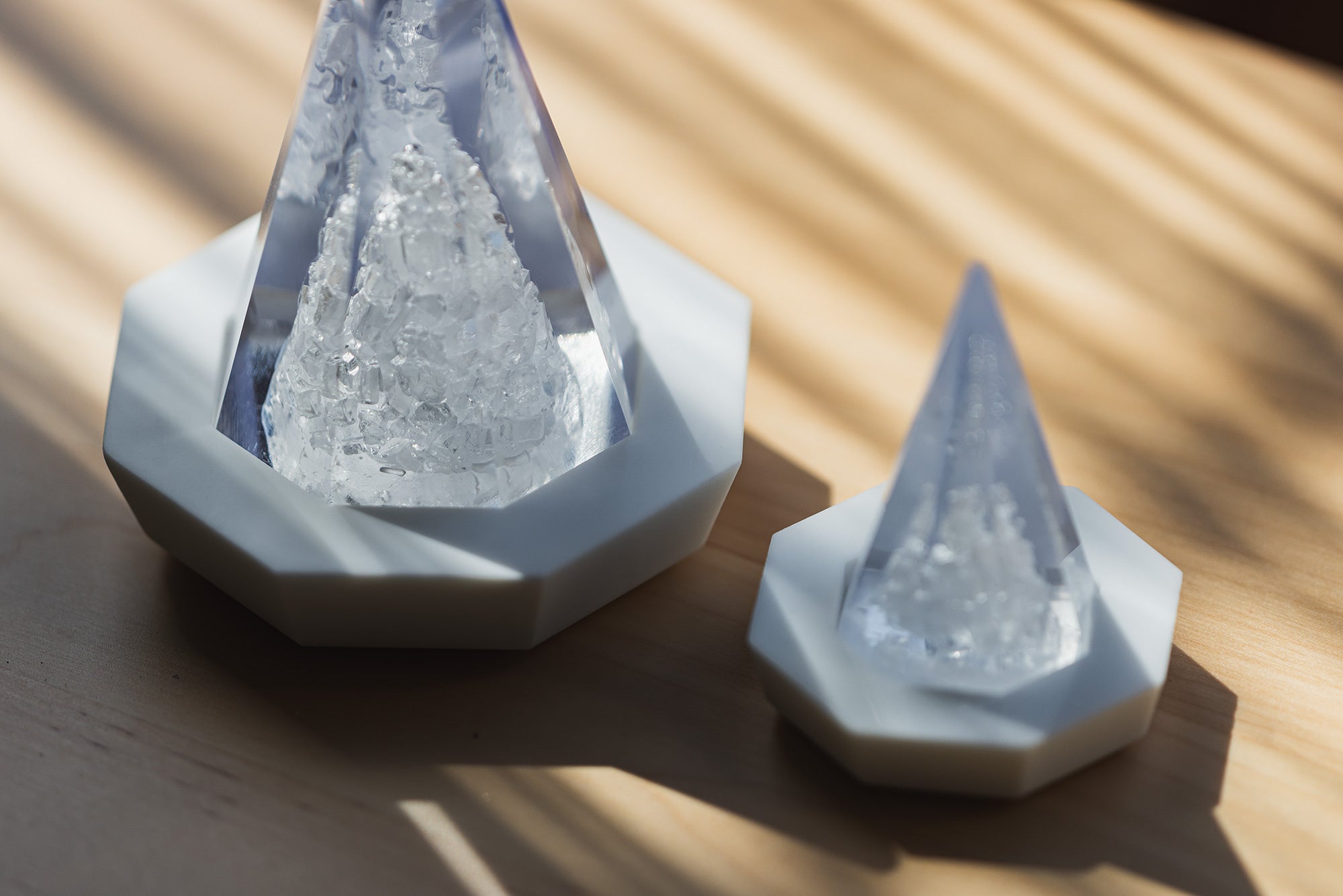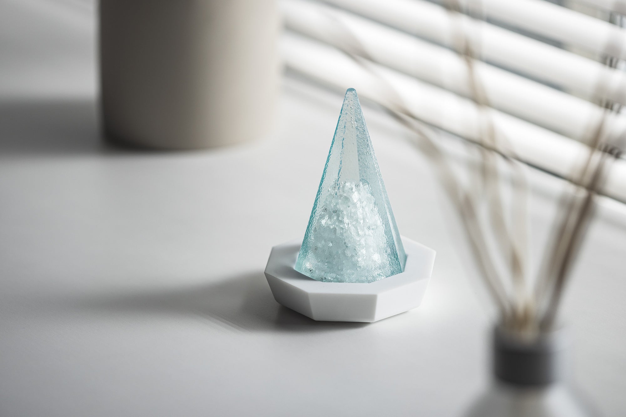 「溶けない盛り塩」は、日本産の塩と美しい岩塩を透明度の高い素材で包み込み、