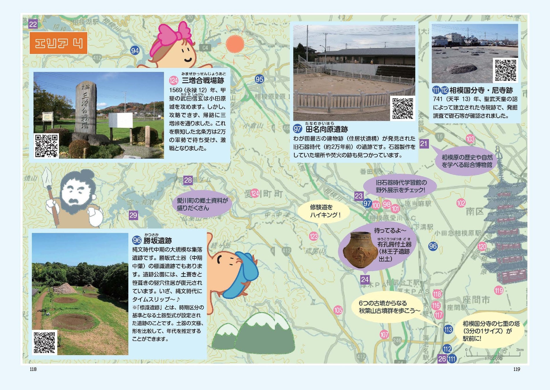 ・第2部:神奈川県内の文化財を7つのエリアに分け、マップやQRコードで史跡めぐりをサポートします。財団イメージキャラクターの「はちくん」と「まきちゃん」が史跡めぐりをガイドします。