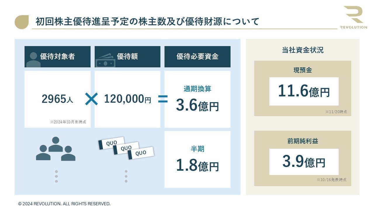 REVOLUTION、初回株主優待進呈対象予定の株主数および優待財源に関するおしらせ