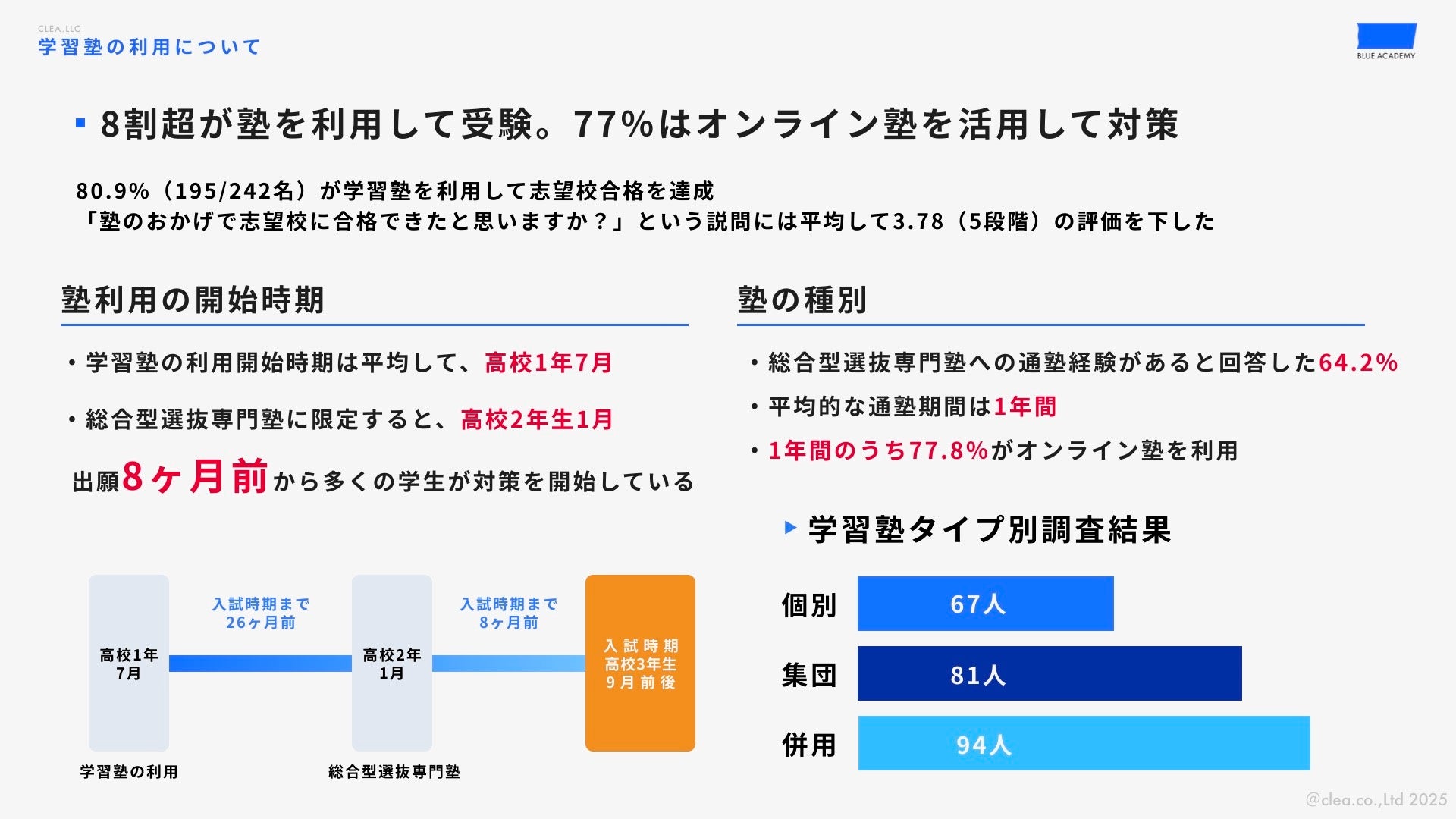 完全版PDFをご覧になりたい方は、ブルーアカデミー公式LINEにご登録のうえ、ダウンロードURLをお受け取りください。 今回の調査結果を図表付きでまとめたPDF(全31ページ)では、より詳細なデータや受験生の生の声をご紹介しています。メディア関係者様などで引用・ご活用いただく際は、出典としてブルーアカデミーの調査名を明記していただけますと幸いです。