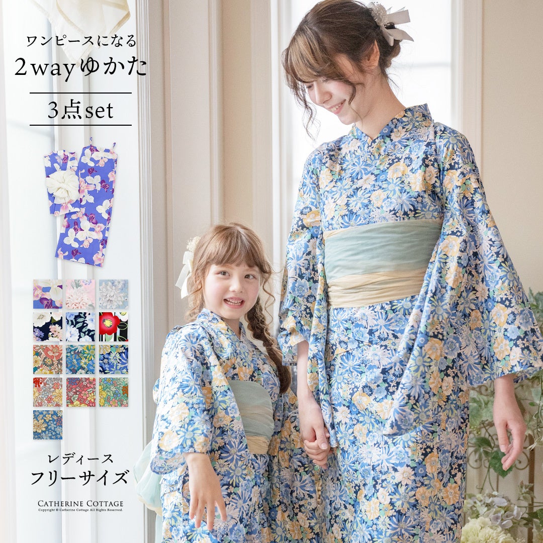 レディースサイズが新登場! 簡単着付け、ワンピースとしても楽しめる2way浴衣で、親子お揃い、姉妹お揃い、双子コーデも