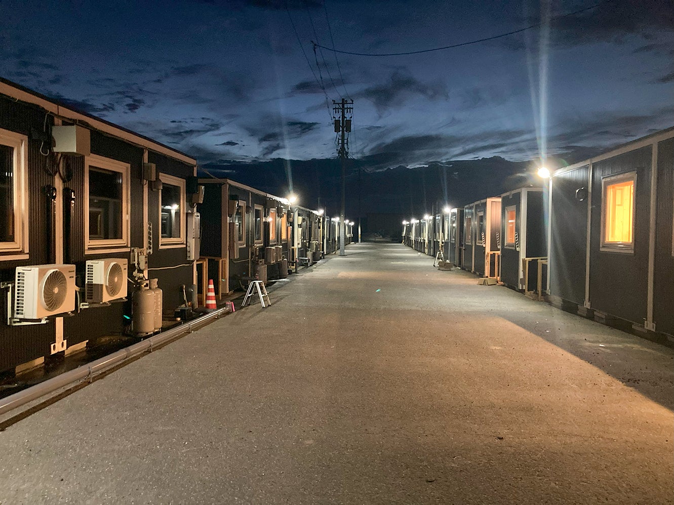 これまで仮設住宅団地、復興作業員用宿舎、仮設学生寮、仮設店舗などを整備してまいりましたが、この度仮設住宅団地の整備が完了となりましたのでご報告いたします。