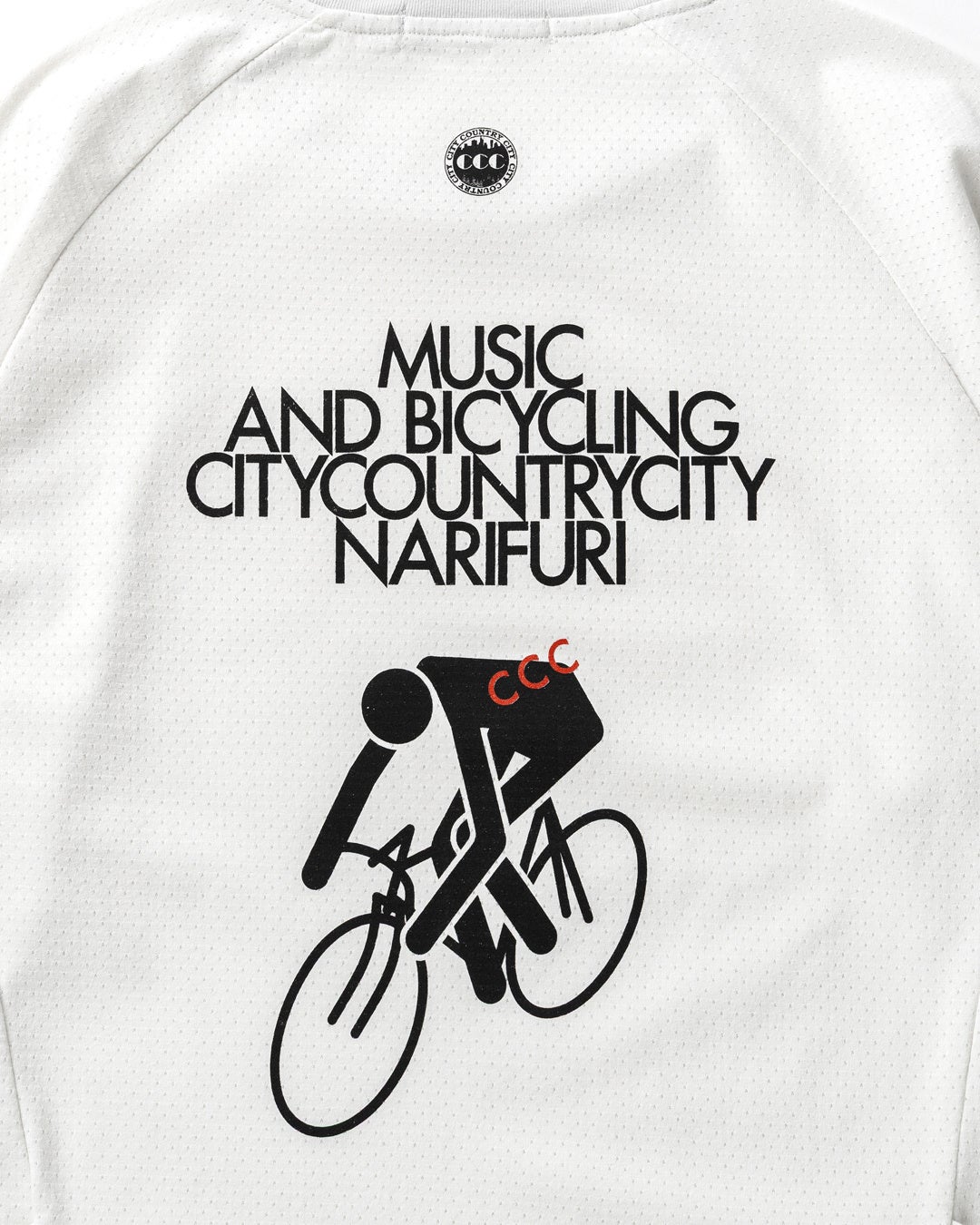 CITY COUNTRY CITYの得意とするミュージックカルチャーとバイシクルカルチャーを融合させたグラフィックとワードが特徴の書き下ろしグラフィックをプリント。