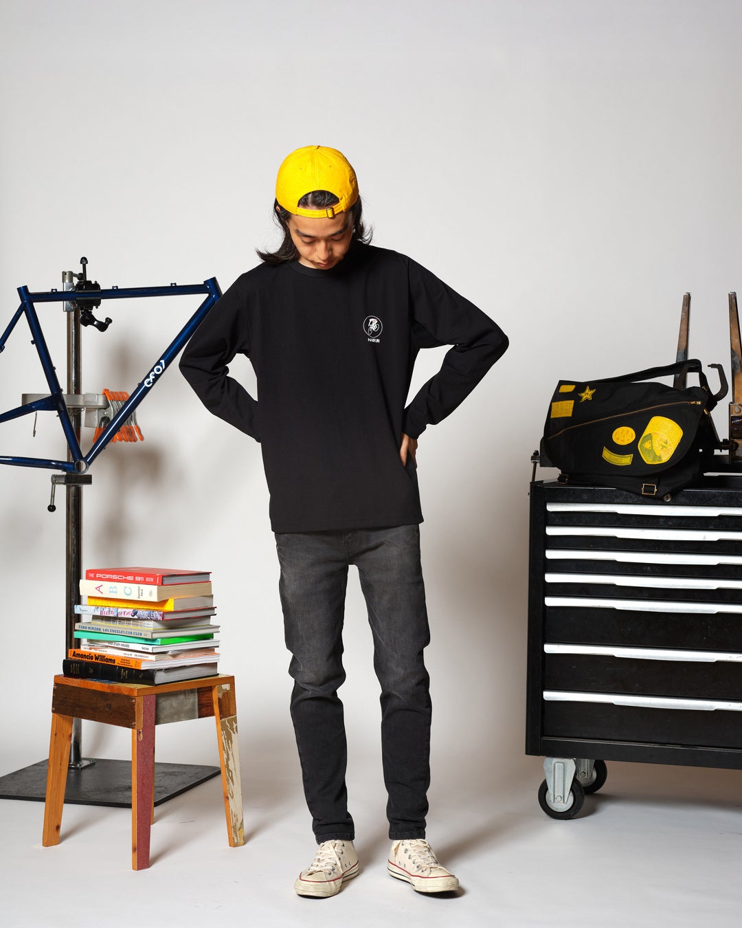 narifuriもCITY COUNTRY CITYも2000年代頃の自転車や音楽、ストリートカルチャーの影響を受けています。本コラボレーションではその時代の【Bike×Music】カルチャーをサンプリングし、グラフィックを制作。過去を振り返るためのものではなく、いまの都市で自転車とともに過ごす時間を心地よくするためのグラフィックに仕上がりました。