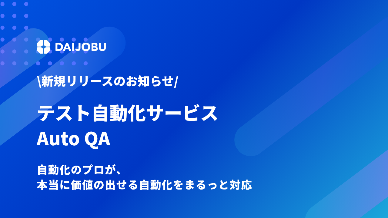 DAIJOBU、SET/テスト自動化の専門チームを新たに組成し、開発スピードと品質の両立を実現するテスト自動化サービス「AutoQA」の提供を開始