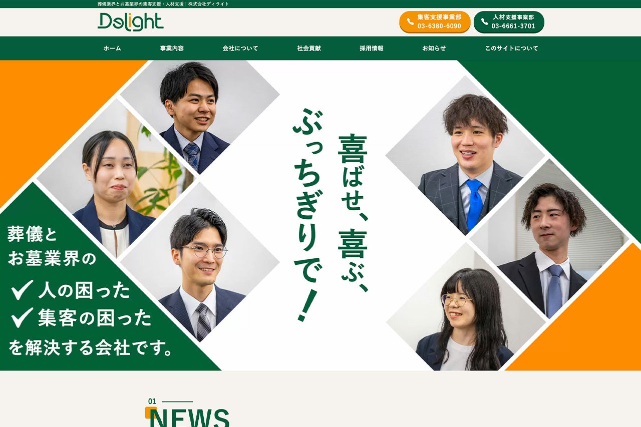 「葬儀のウェブ担当」は、株式会社ディライトが運営する葬儀社向けのウェブ集客サポートサービスです。