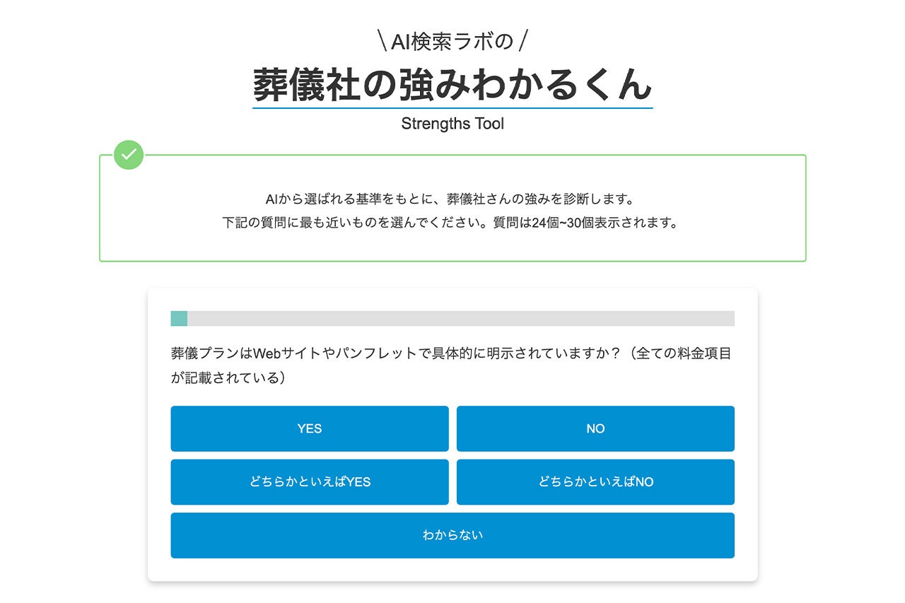 AI検索ラボが開発した『葬儀社の強みわかるくん』。