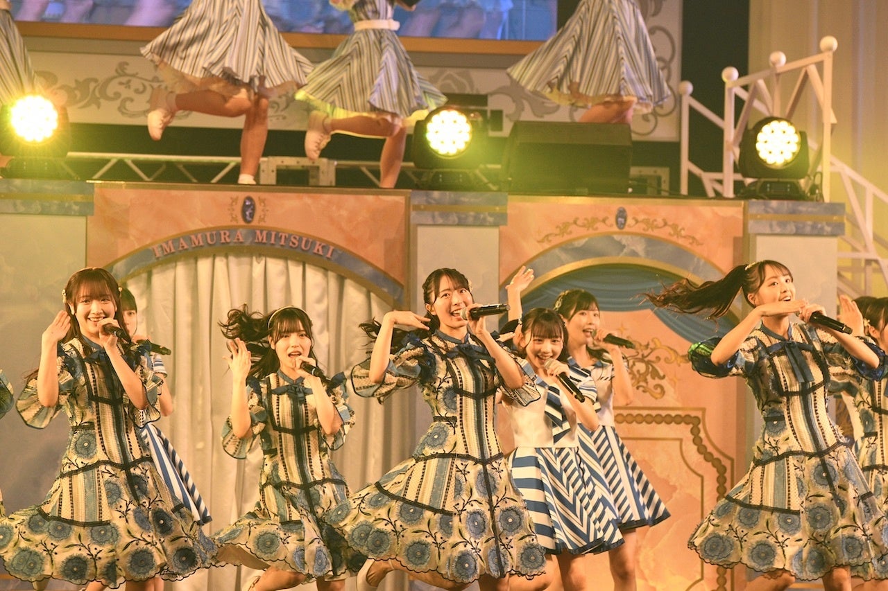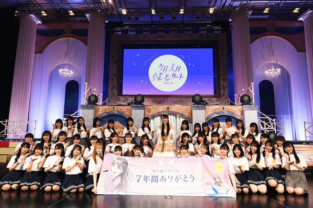 今村のペンライトのカラーであるピンクと紫で会場が染まる中、今村の「笑顔で楽しんでいきましょう!」の呼びかけで今村センター曲『サングラスデイズ』からスタート。副キャプテン福田朱里からの「昨年末に卒業発表をして、ついにこの日がやってきてしまいました。みちゅ、心境はどうですか?」の質問には「袖に一人でいるときにうるっときちゃったんですけど、今日は笑顔で終わるって決めました。今日はSTU48の結成7周年の日でもあり、こうして皆さんと結成日にお会いできるというのも嬉しいことなので、ハッピーな気持ちで最後までやっていけたらいいなと思います!よろしくお願いします!」と意気込んだ。STU48でやり残してきたことを全てやることと、アイドルをやり切るという2つのコンセプトで組まれたセットリストは “STU48を制覇” “思い出の楽曲” “アイドルをやり切る” などのテーマ分けされたブロックで構成されており、今後のSTU48を考える今村の愛情が込められていた。卒業生である田中皓子、土路生優里も登場し、今村と3人のユニット“とろみちゅこっこ”で「誰かといたい」を披露。とろみちゅこっこの再結成に会場は感動的なムードに包まれた。本編最後には、今村が「みんなへの思いを乗せて選んだ楽曲です。」とコメントすると『大好きな人』を披露し本編は幕を下ろした。アンコールではドレスに身を包んだ今村がステージ中央に立ち『今日までのメロディー』をソロで歌唱。歌唱後の卒業スピーチでは思い出に目を潤ませながらも凛とした表情で「こうして7年間、ずっと夢見てきたアイドルをこのSTU48で叶えることができて、本当に幸せな時間を過ごさせていただきました。こうして7年を経て、こんなに素敵な場所で、こんなに素敵なみなさんとアイドル人生の最後を迎えられたことが私にとって本当に人生の財産になりました。みんなと一緒にこうしてパフォーマンスしてると、これからもまだ自分がこのグループにいる気がするんですけど、でも、決心がついて決めた道なので、これからまた皆さんといつかまた会えるように、私も頑張って行きますし、これからのSTU48を、いちファンとして、いち盛大なファンとして、たくさんたくさん応援していきます。たくさんのアイドルさんの中から私を見つけてくださって、応援してくださって本当に有難うございました!」と語り「最後はやっぱりあのコールしたいです。」と切り出すし「瀬戸内からみなさんに会いにやってきました”Nice to〜“」と声を上げると、客席からの「meet you〜」のコールで全員登場し『Nice to meet you!』を歌唱。続けて今村がキャプテンを務めていた課外活動ユニットである“STUDIO”の新リーダーの発表があり、1期生の峯吉愛梨沙が就任。今村から「STUDIOのメンバーはありちゃん(峯吉)の他にもたくさんしっかりしたメンバーがいるんですよ。でも本当にありちゃんはSTUDIOのことをたくさん考えてくれていて、これからどんどんレベルアップして欲しいなという想いで、託そうと思いました。これからSTUDIOを宜しくお願いします」と託されると峯吉は「ありがとうございますSTUDIOのパフォーマンス力を落とさないように、新しいSTUDIOの魅力を見つけてみなさんに素敵なグループだと思ってもらえるように頑張ります。」とコメント。そして、STU48 の三代目の新キャプテンの発表へ。今村が「これから8年目に突入するSTU48、岡田あずみちゃんに仕切っていただきたいと思います!」と発表すると会場からは驚きの声と拍手が沸き起こった。2.5期研究生(4/1より正規生)の岡田あずみは「STU48 三代目のキャプテンを務めさせていただくことになりました。今日まで研究生として活動していたので、STU48が7周年を迎え、8年目を迎えるこのタイミングで私がキャプテンになることに正直、怖い気持ちや不安な気持ちがあります。先輩方が作ってくださったこのSTU48が大好きで、だからこそSTU48を大切に守ってもっと大きなグループに、もっと素敵なグループに、これからを繋いでいけるようなキャプテンになりたいと思います。これからもSTU48をファンの皆さん、そしてたくさんの方々により一層愛してもらえるようにみんなで一緒に頑張っていきたいと思っていますので、まだまだ未熟なところはたくさんありますが、応援をよろしくお願いします。」と深々とお辞儀をした。新しいリーダーとキャプテン発表からの選曲は『RESET』。ここにも今村らしさを感じるセットリストである。最後は福田が「みちゅ!やり残したことはない?言い残したことはな?」と問うと今村は「寂しい気持ちももちろんあるけど、あずみんの円陣でこれからのSTU48が楽しみになったので、私は外から応援できることが幸せだなっていう気持ちです。私もみんなに会えるように頑張る!」と答え、ラスト曲『思い出せる恋をしよう』を披露。28曲を歌いきり「本当にありがとうございました。本当に幸せもので、この時間が続けばいいなと思うんですが、私も新た