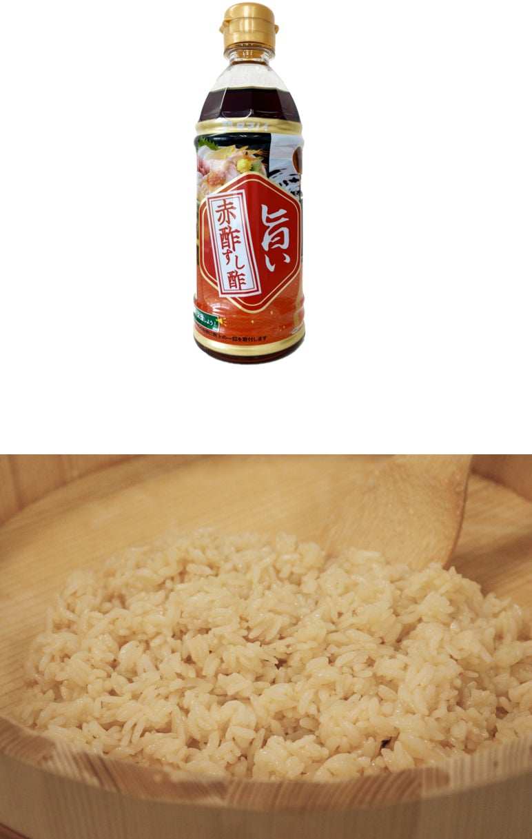 赤シャリが堪能できる『旨い赤酢すし酢 360mlPET』を発売する運びとなりました。本品を使用して作る赤シャリは、通常の酢飯よりも深いうま味を感じることができるため、魚介類との相性が良く、海鮮丼や手巻き寿司におすすめです。
