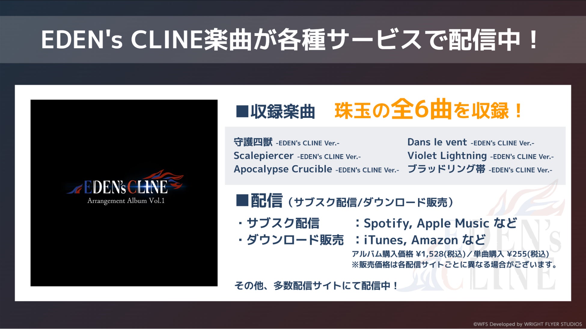 各種サブスクリプションサービスで『EDEN's CLINE』珠玉の楽曲たちが配信中!