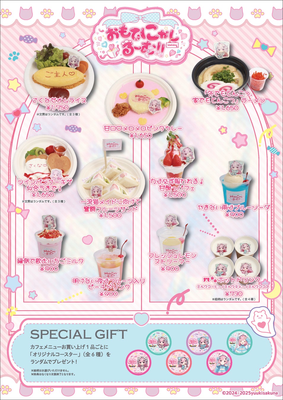 期間中、「結城さくな×おもてにゃしるーむ」カフェメニューをお買い上げ1品ごとに【オリジナルコースター(全6種)】をランダムで1枚差し上げます。