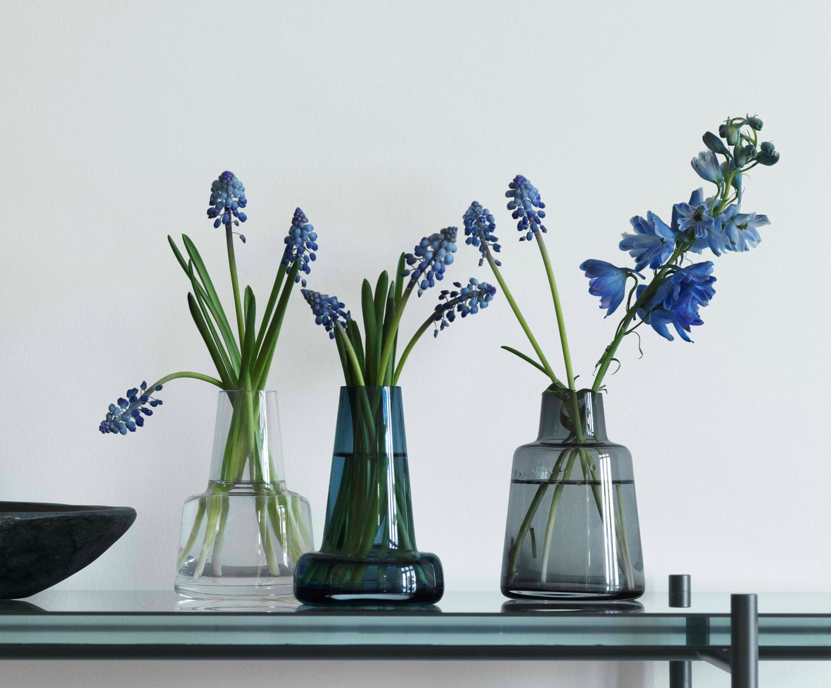 北欧を代表するデザイナー、Louise Campbell(ルイーズ・キャンベル)がこのベースに込めた哲学は、「新鮮な花が、たっぷりと水を蓄えられること」。花を長く美しく保つための構造こそが、デザインの出発点です。安定感のある広いボトムは十分な水量を確保し、花や枝物の生命力を支えます。一方で、細く設計されたネックが花の位置を自然に整え、テクニックがなくても美しい立ち姿をつくり出します。