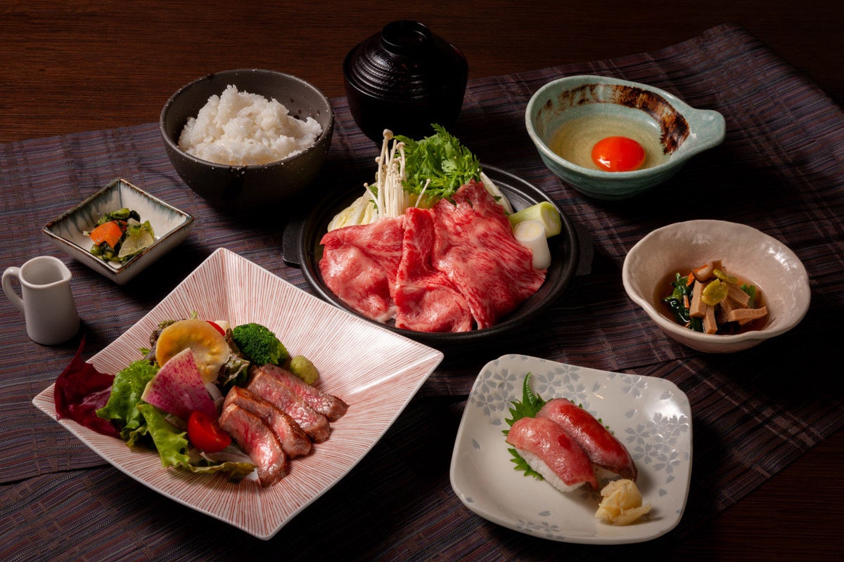 贅沢な米沢牛を使った、すき焼きやステーキなど、さまざまなメニューで堪能できます。