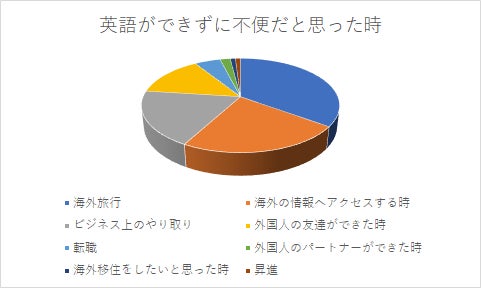 100人の男女に聞いた「英語ができずに不便だと思った時」のアンケート結果。海外旅行と海外情報へアクセスが上位に。