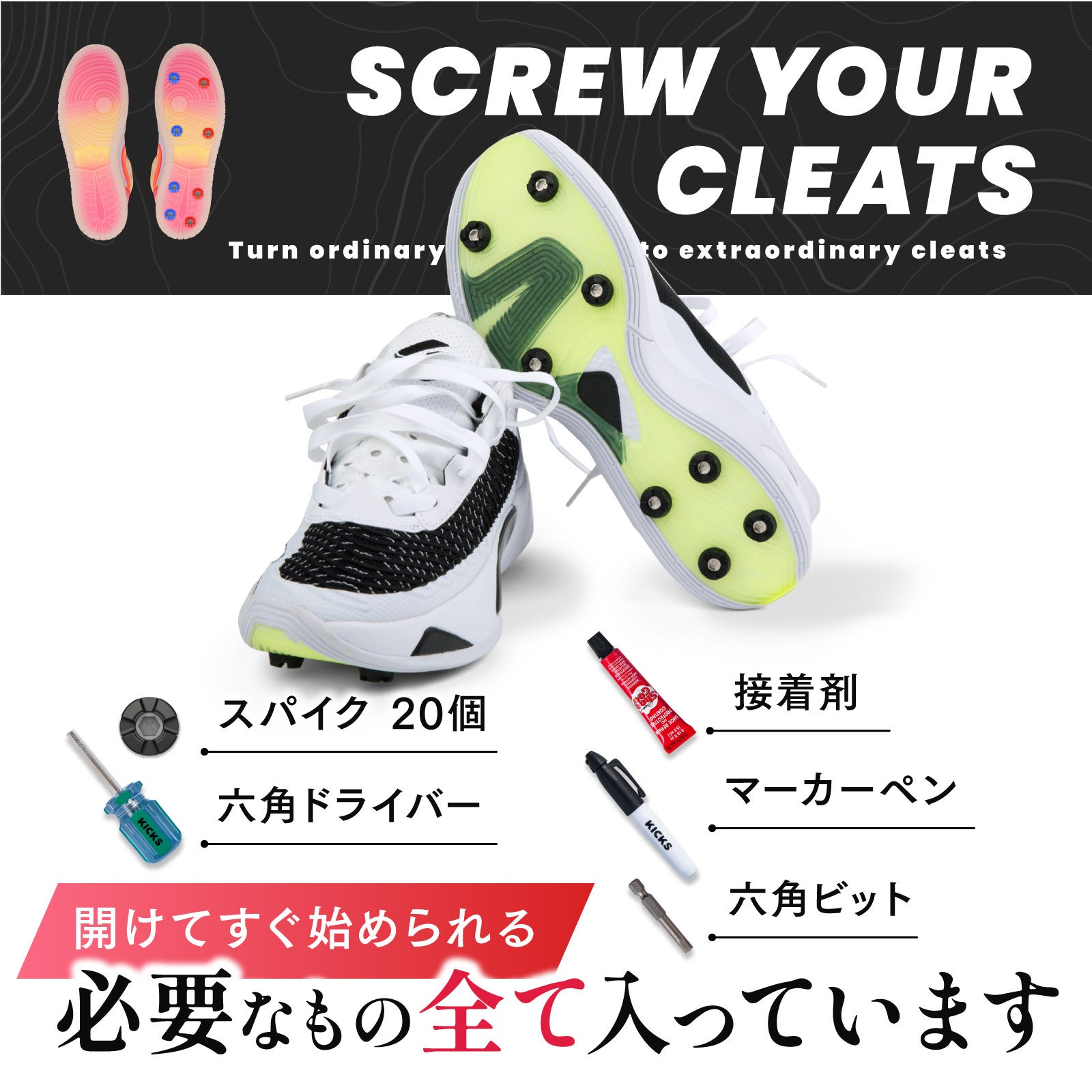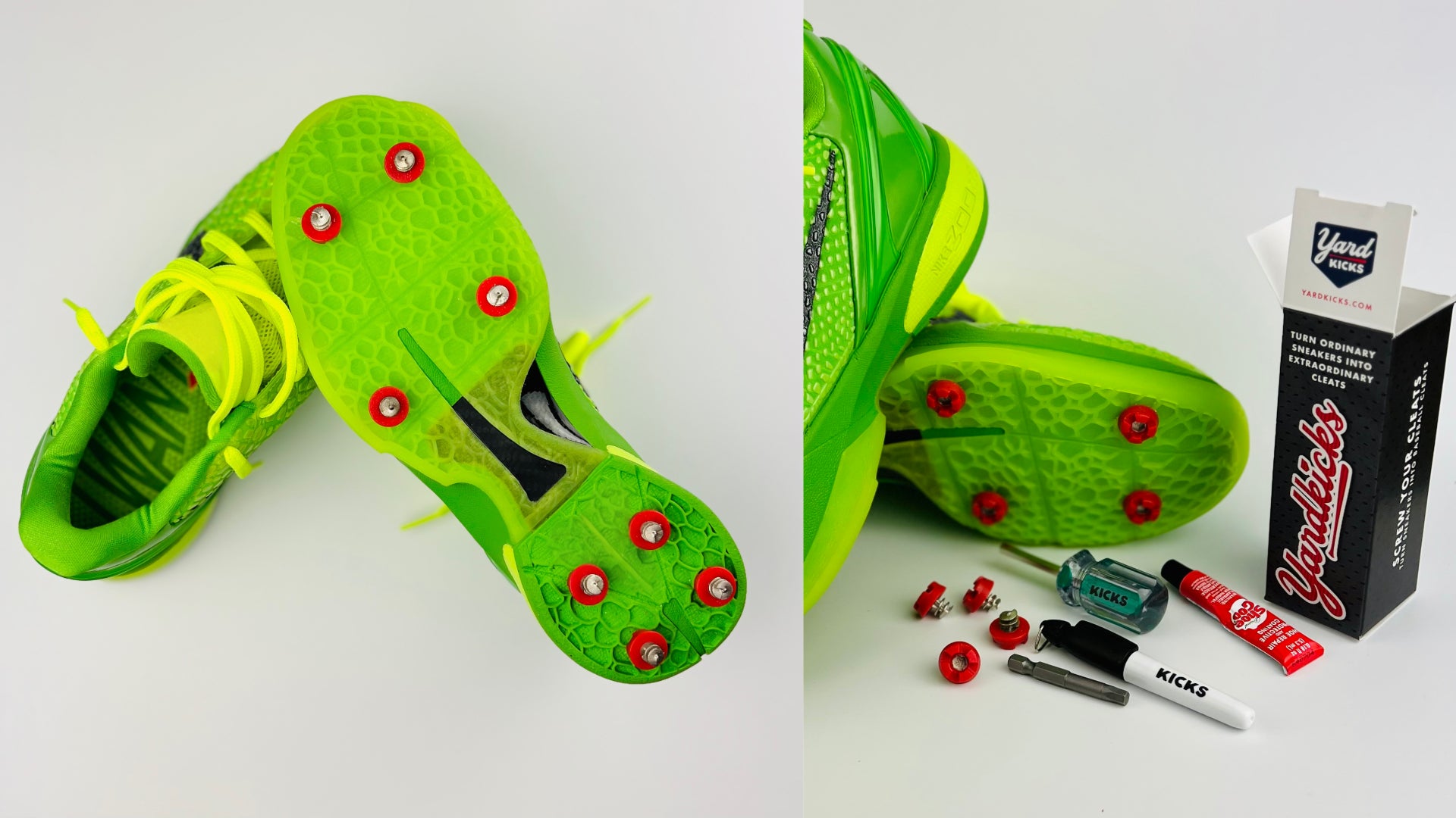 米国生まれのヤードキックスは、手持ちのスニーカーにスパイクを取り付け、野球やソフトボール用スパイクシューズにカスタマイズできるキット。