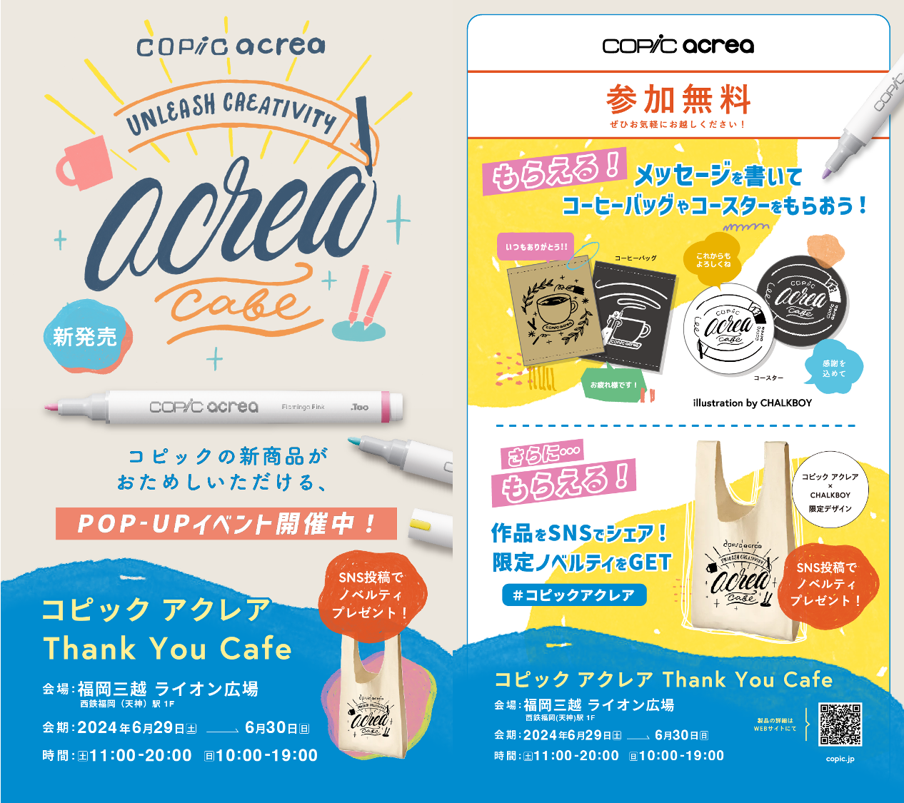 6月29日(土)、30日(日)に福岡三越ライオン広場でPOPUPイベント「Copic acrea Thank You Cafe」を開催!