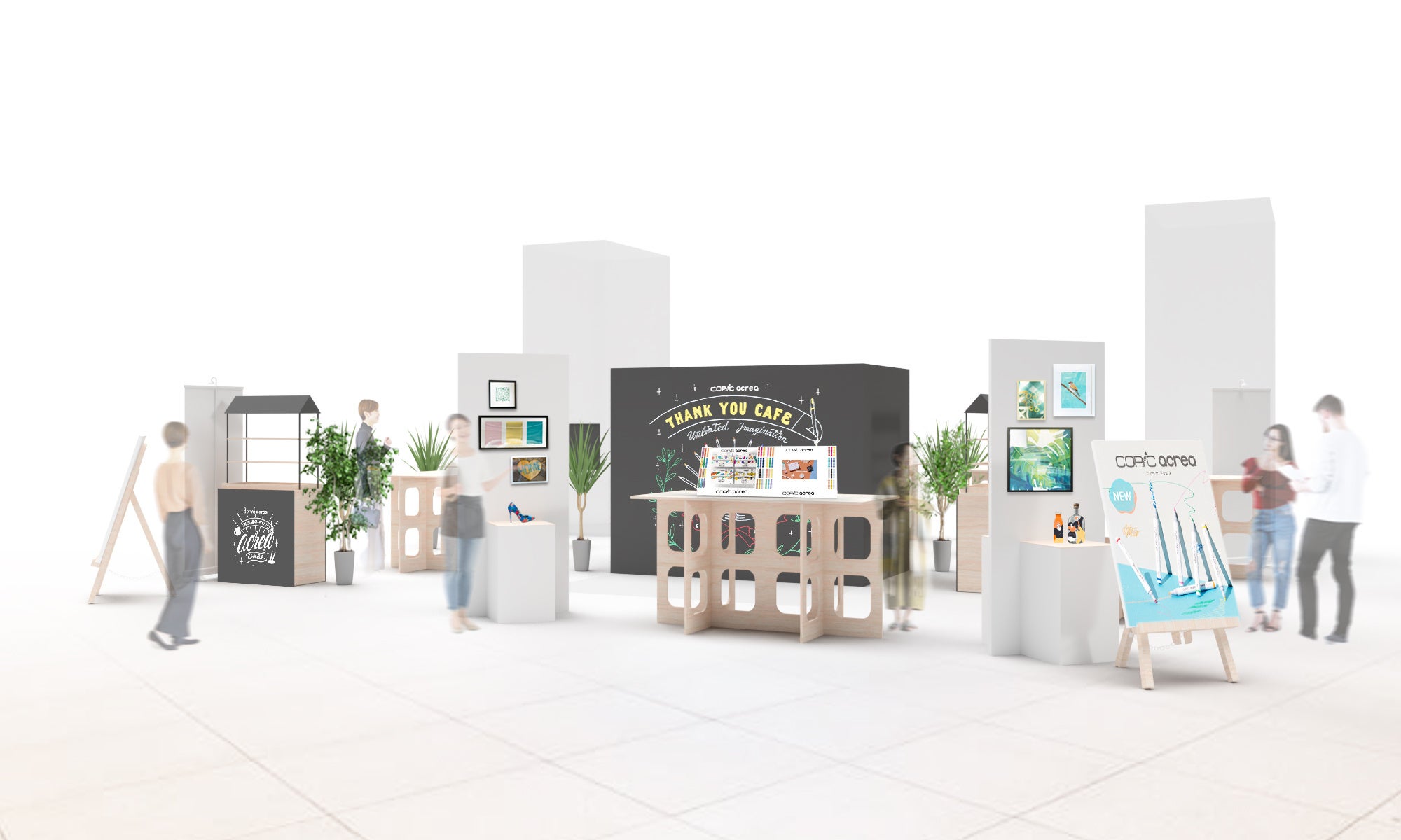 「Copic acrea Thank You Cafe」では、カフェ風のスペースにて新商品「コピック アクレア」を体験、ご購入いただけます。6月14日〜16日に東京駅で開催された同イベントでは、3日間で1500名を超える多くの方にご参加いただきました。