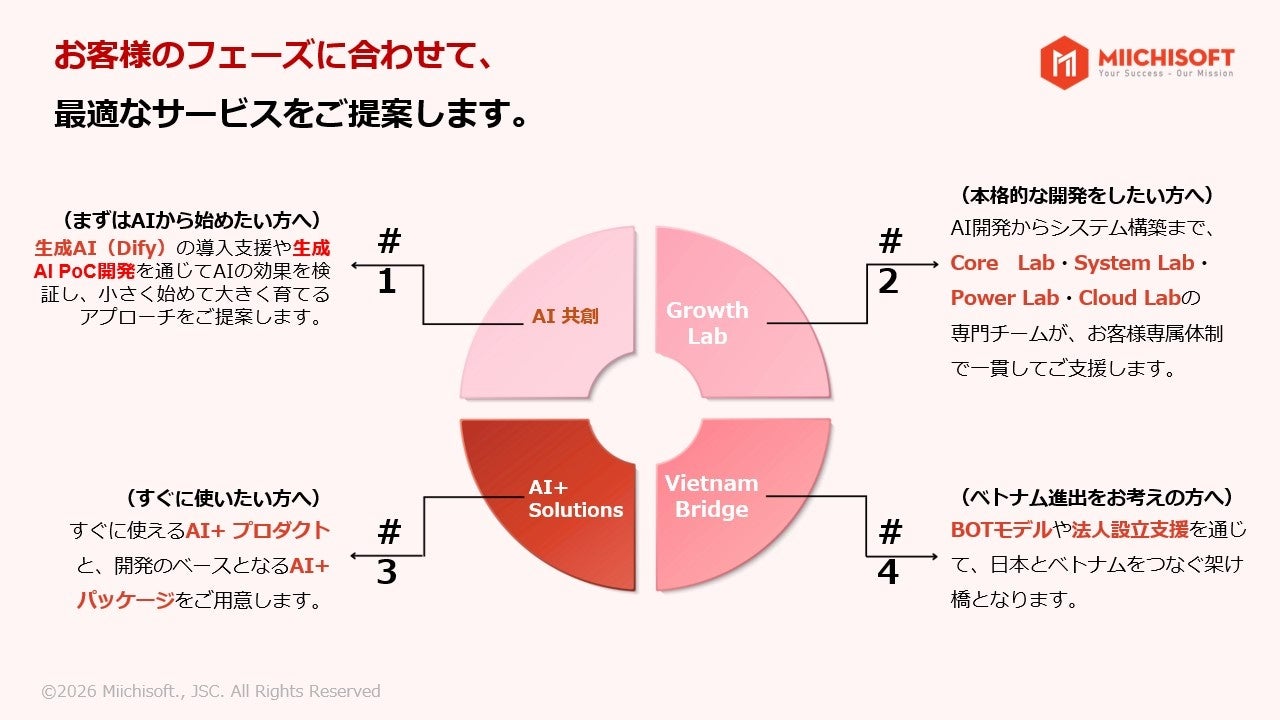 Miichisoft株式会社は2026年1月15日、従来のオフショア開発を主軸とした体制から、日本企業の成長を長期的に支援する『Growth Partner』へと移行する戦略を発表しました。