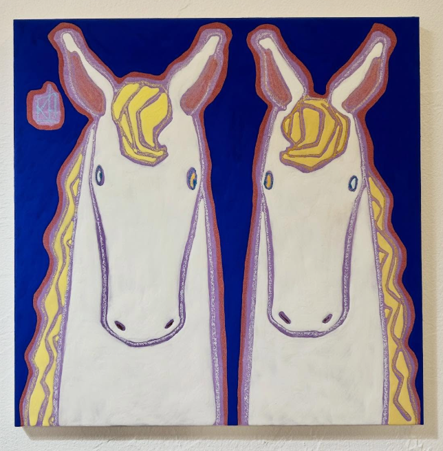 41.0×41.0cm, 2026, 麻紙, 岩絵具, 膠, クレヨン