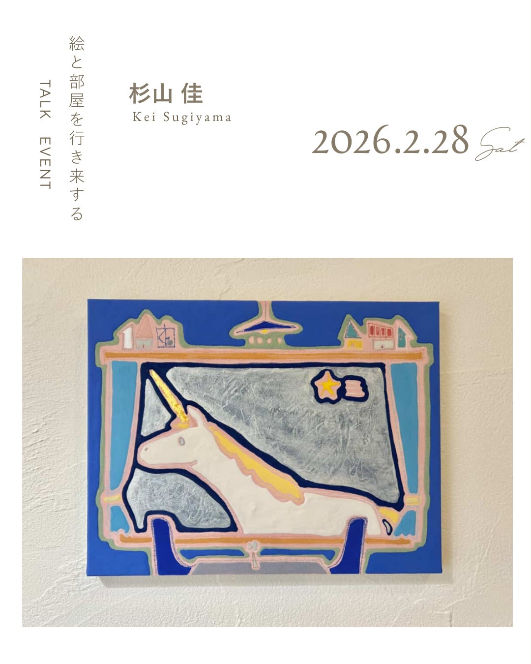 HUG FOR_.では、画家・杉山佳による個展「絵と部屋を行き来する」を、2026年2月28日(土)から3月15日(日)まで開催いたします。絵画と空間の関係が生み出す新しい体験をお楽しみください。