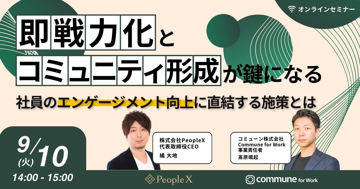 9/10(火)に共催セミナー「即戦力化とコミュニティ形成が鍵になる 社員のエンゲージメント向上に直結する施策とは〜」開催