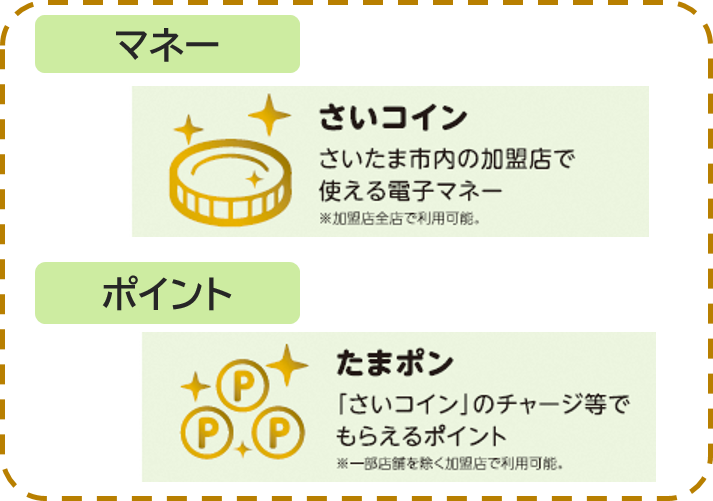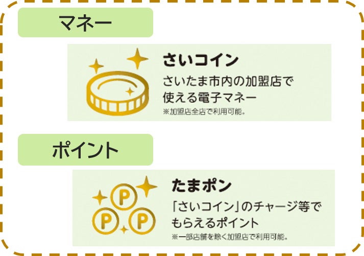 デジタル地域通貨「さいコイン」「たまポン」は、「さいたま市みんなのアプリ」で提供する市内の加盟店で使える新たなキャッシュレス決済サービスです。