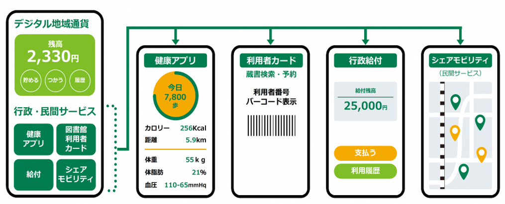 ・デジタル地域通貨で、民間のシェアサイクルクーポンを購入できるようになります。